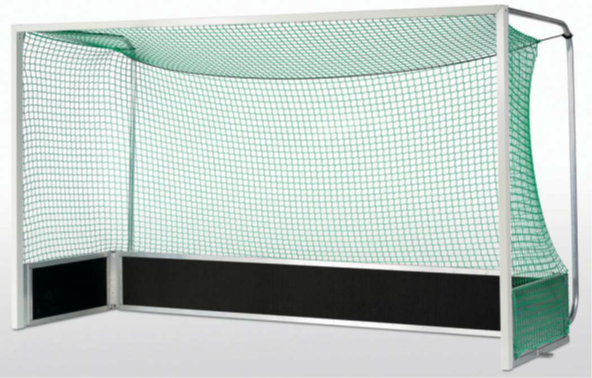 Feldhockeytor, freie Netzaufhängung, inkl. Transportrollen, mit schwarzer Bandenpolsterung
