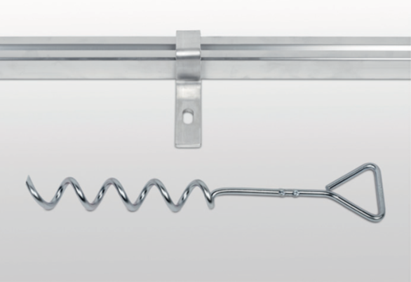 einfache spiralförmige Verankerungen und Befestigungslaschen aus verzinktem Stahl.