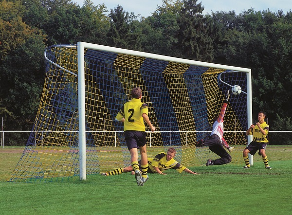 Fußballtornetz 7,50m x 2,50m x 0,80/1,50m, Stärke 4,00mm, 2-farbig