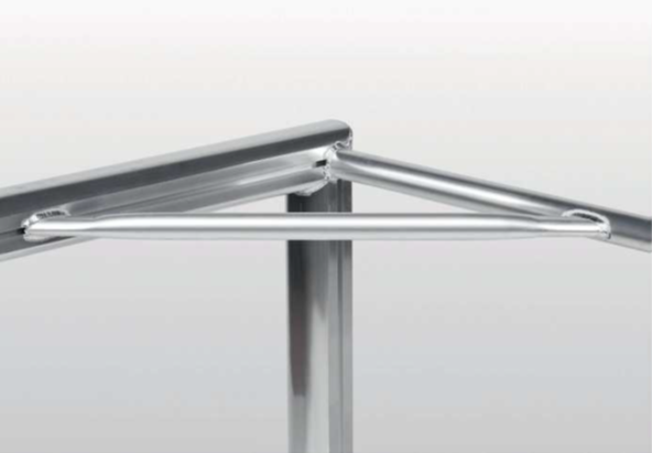 Der Bereich Latte/Pfosten wird mit einem Gussformteil-Eckverbinder verstärkt, der vor dem Schweißen eingeführt wird.