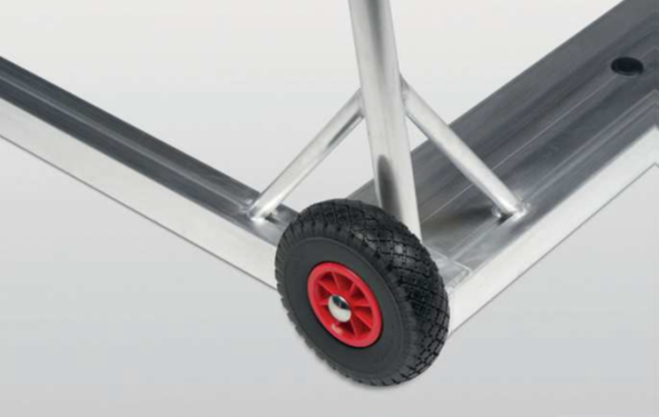 2 Stück angeschweißte Transportrollen und 2 Stück angeschweißte Griffe.
