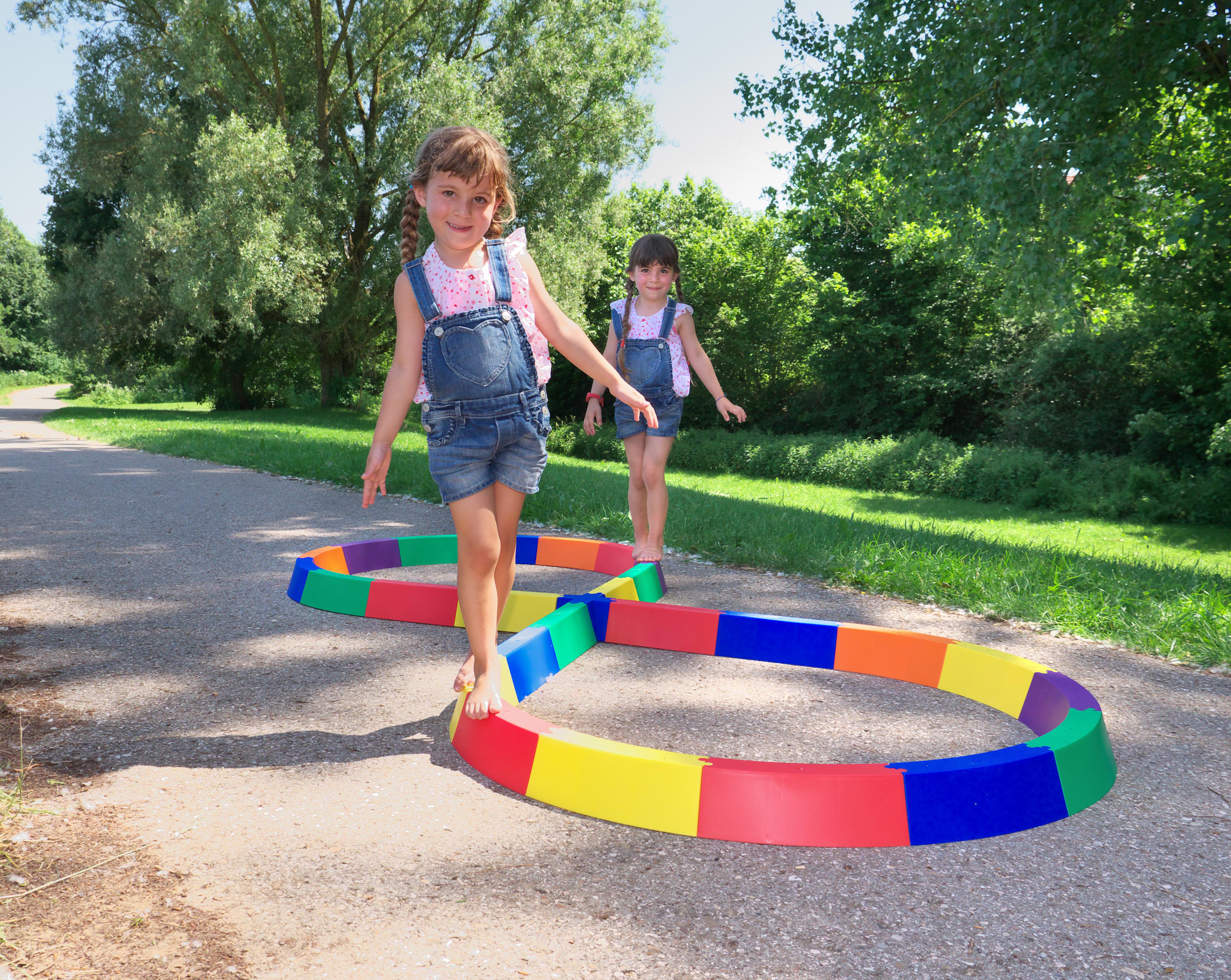 Die begehbare obere Fläche hat eine Breits von 5cm. Dadurch wird das Balancieren zu einer Herausforderung für die großen und kleinen Kinder.