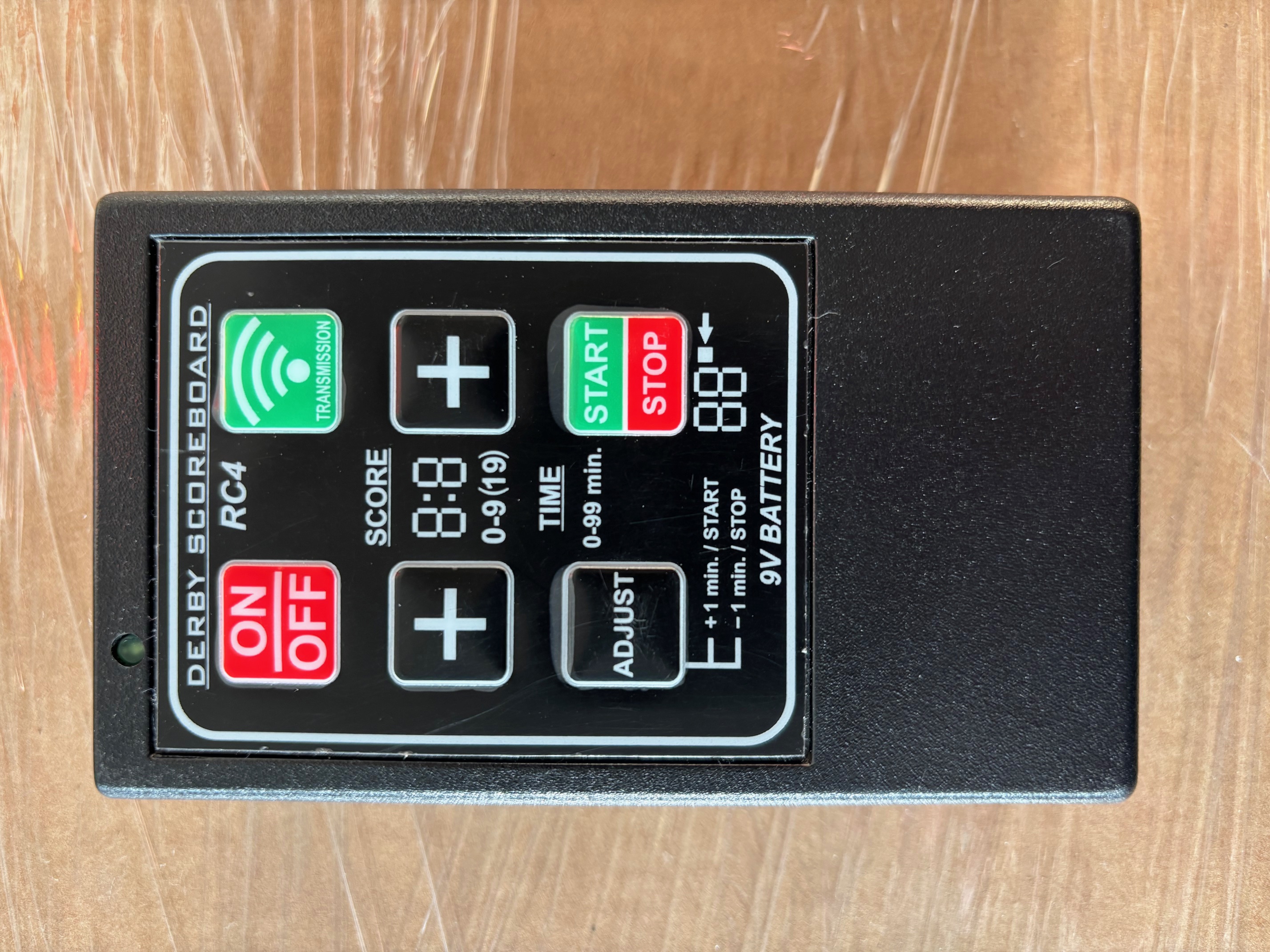 Die Anzeigetafel wird mittels einer Funkfernbedienung bedient. So lassen sich Spielstand und Spielminuten anzeigen bzw. starten.