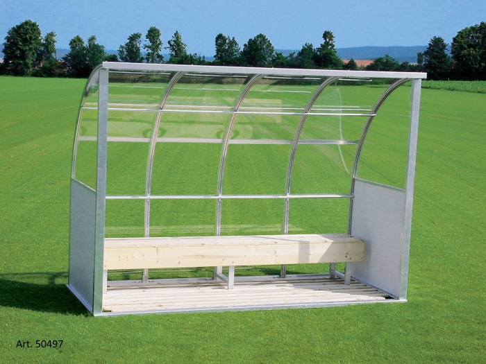 JOBASPORT® Spielerkabine Europa, Länge: 2,95 m / 6 Personen mit Sitzbank - Dachplatten aus Polycarbonat