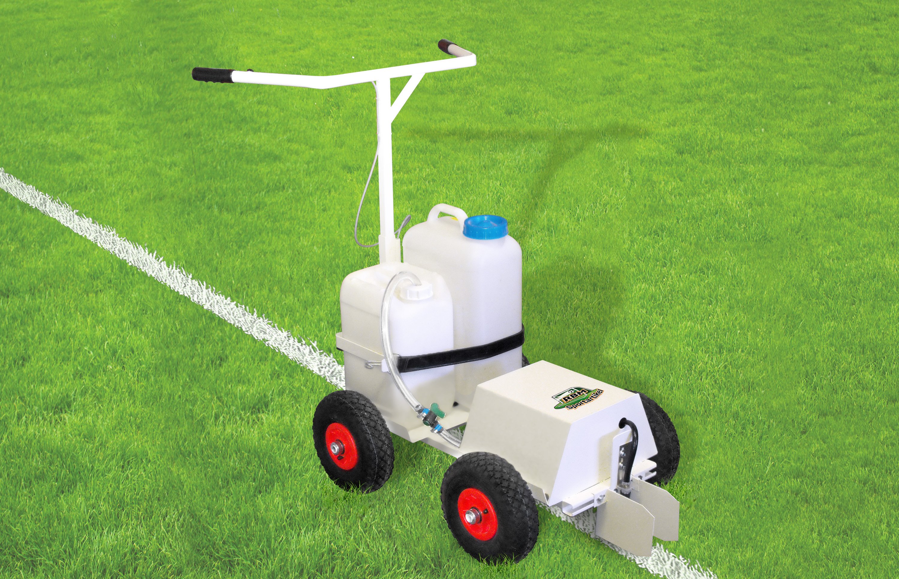 Die starke Batterie wird über einen EIN/AUS-Schalter am Führungsholm bedient und ermöglicht einfachstes Markieren von mindestens 6 Spielfeldern.