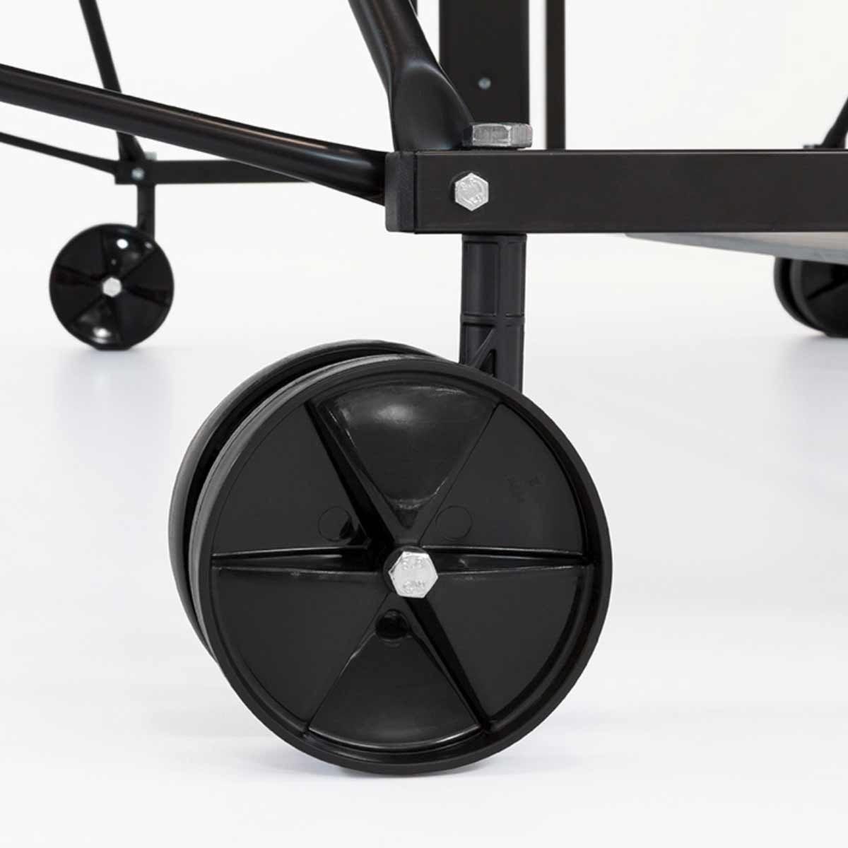 Der preisgünstige, robuste Tisch ist „Made in Germany“ und die ideale Lösung für Gelegenheitsspieler im Garten, in der Garageneinfahrt oder an jeder anderen Lokation unter freiem Himmel. Die Platten mit Fahrwagen sind klappbar und lassen sich dank der schwenkbaren Doppelräder überall leicht auf- und wieder abbauen.